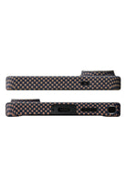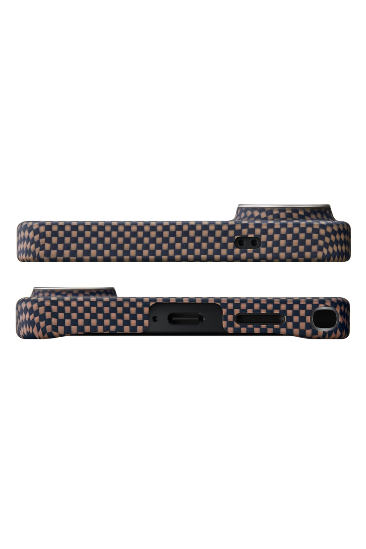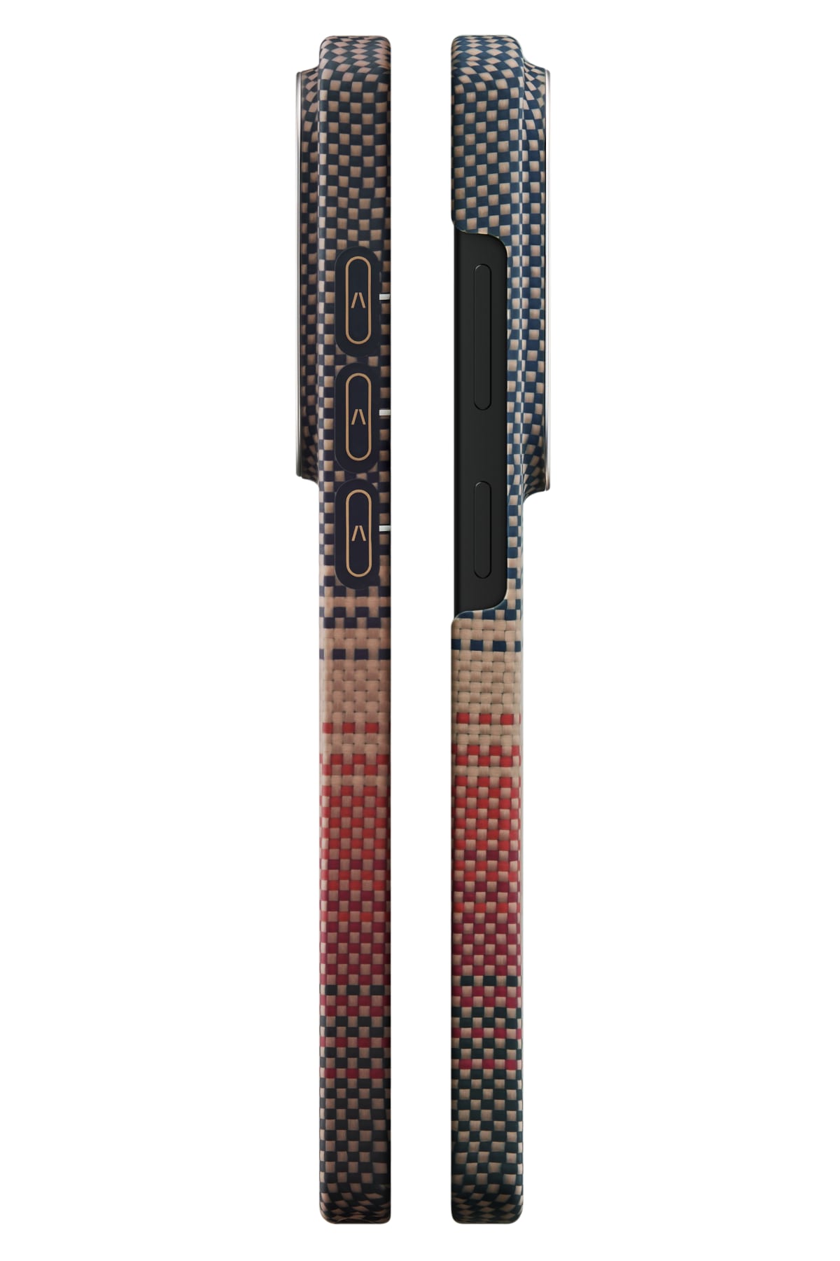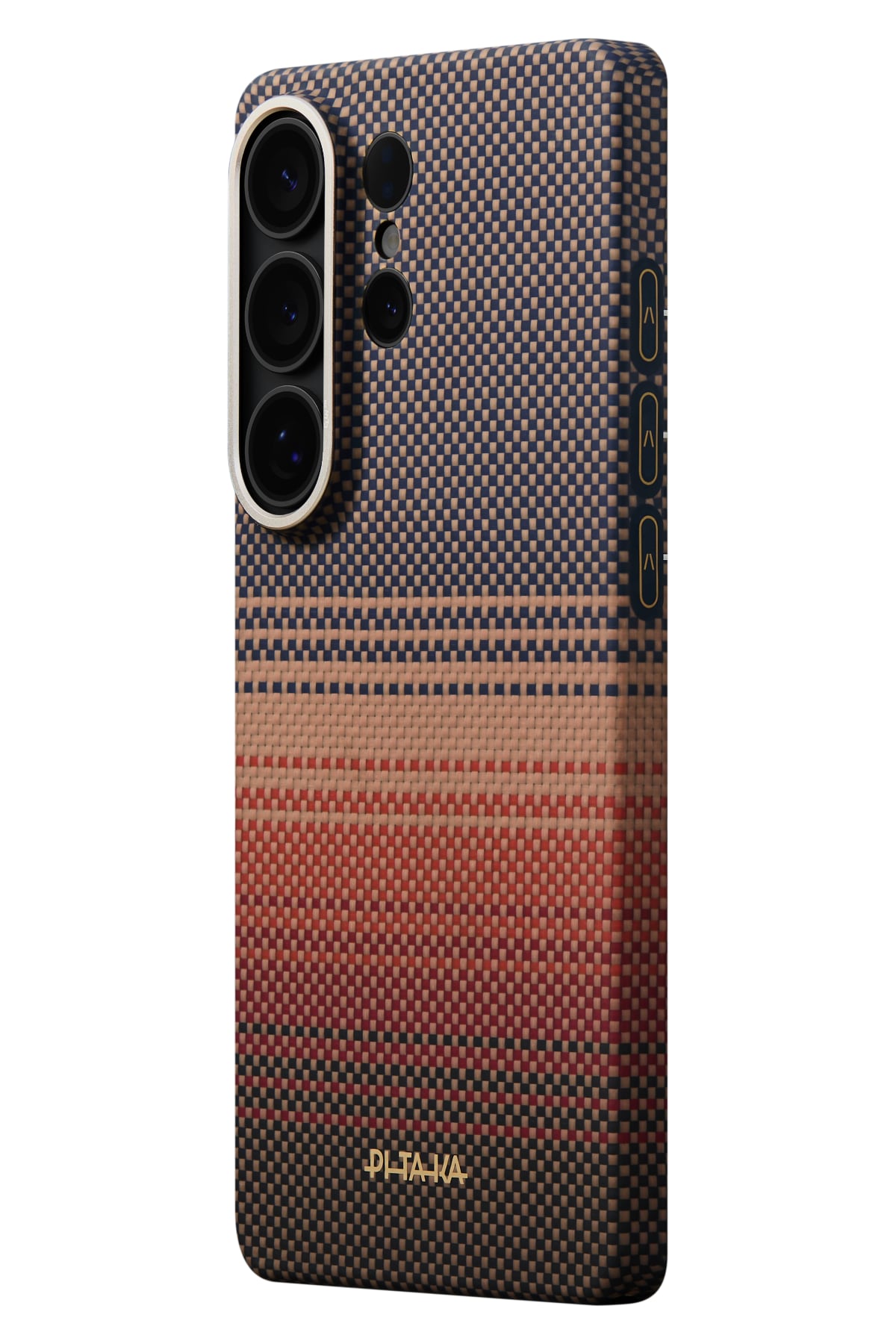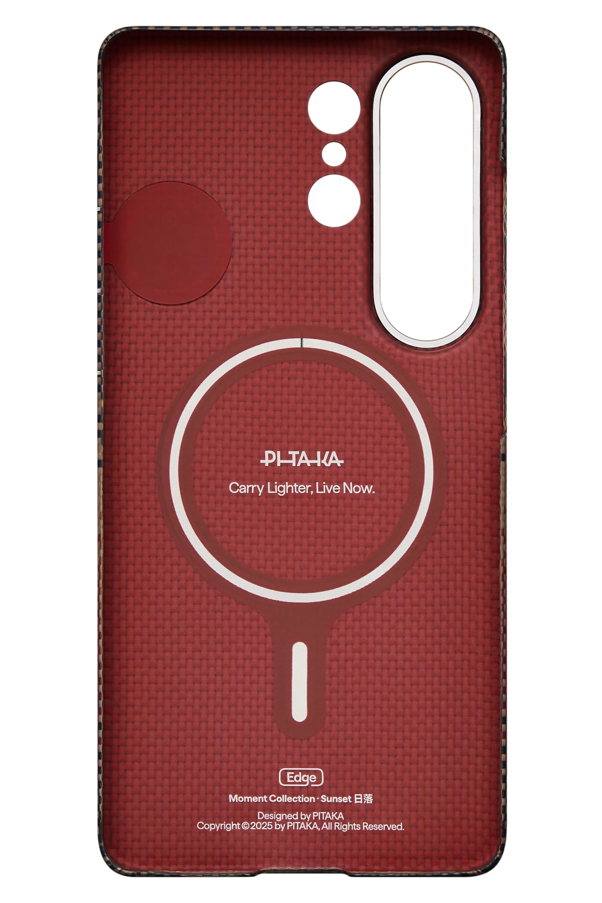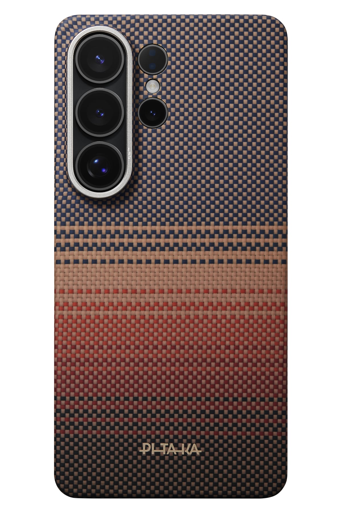 Aerospace sınıfı aramid fiber dokuma yapısı sayesinde karbon hissiyatı sunan yüzey, çizilmelere ve günlük aşınmalara karşı yüksek dayanıklılık sağlar. Fusion Weaving teknolojisi ile üretilen Sunset tonları modern ve premium bir görünüm kazandırır. Alüminyum alaşımlı kamera çerçevesi kamera bölümünü darbelere karşı korur.